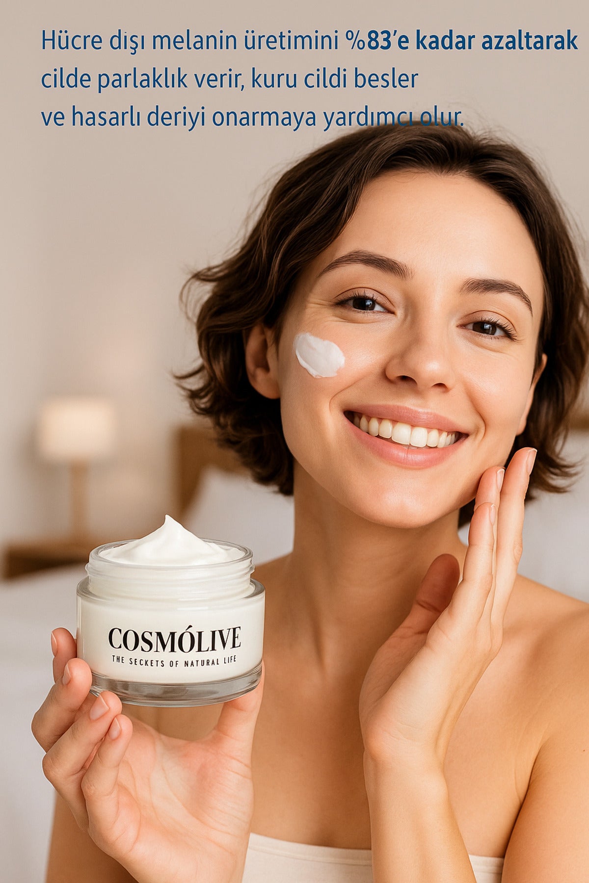 Cosmolive Koyu Leke Karşıtı Cilt Kremi – Vitamin C + Niacinamide + Meyan Kökü + Gotu Kola