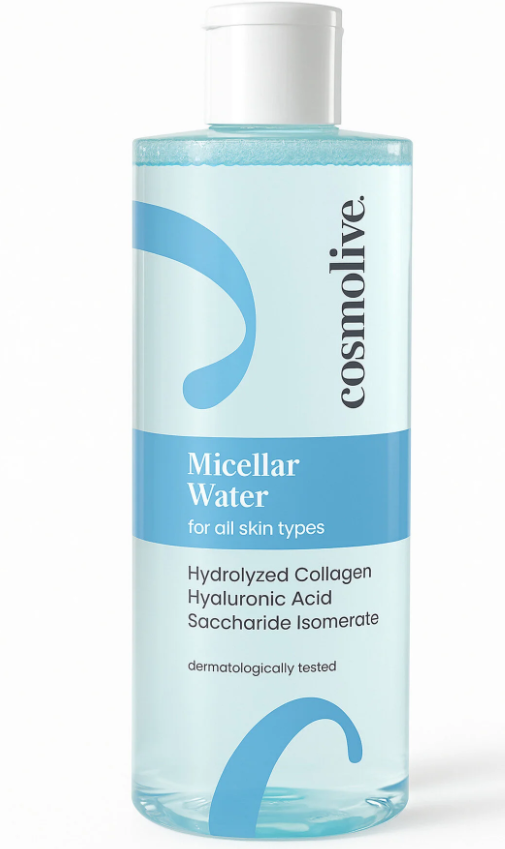Cosmolive Micellar Water – Tüm Cilt Tipleri İçin Makyaj Temizleme Suyu | Kolajen + Hyaluronik Asit + Saccharide Isomerate