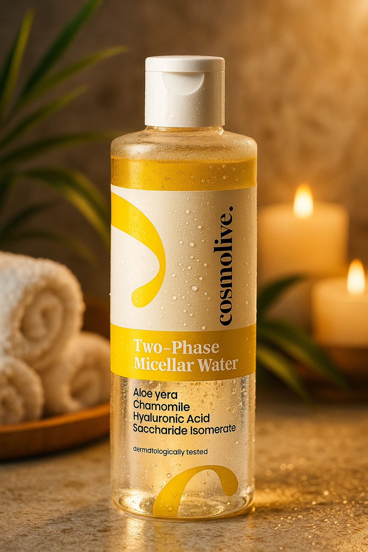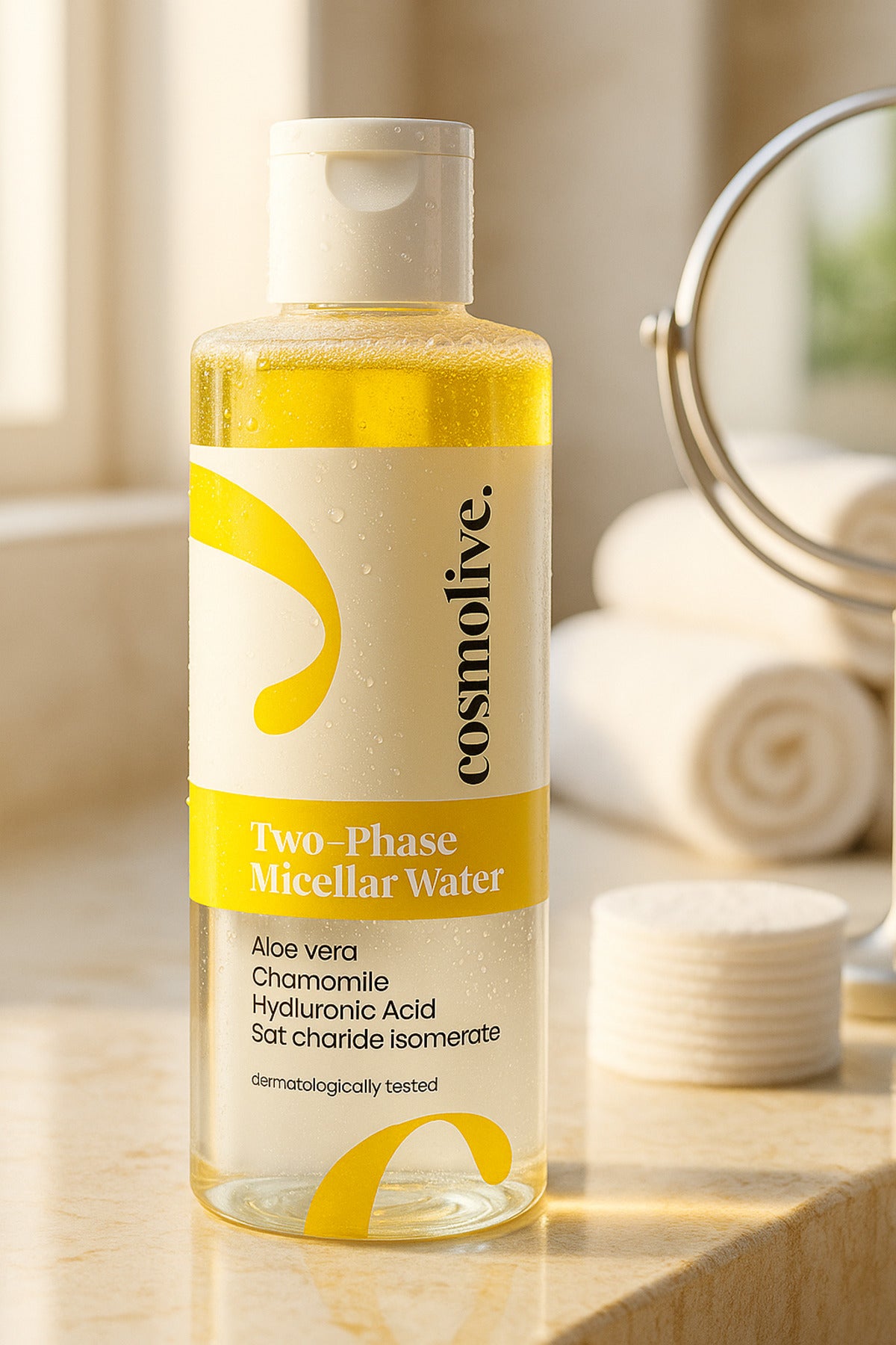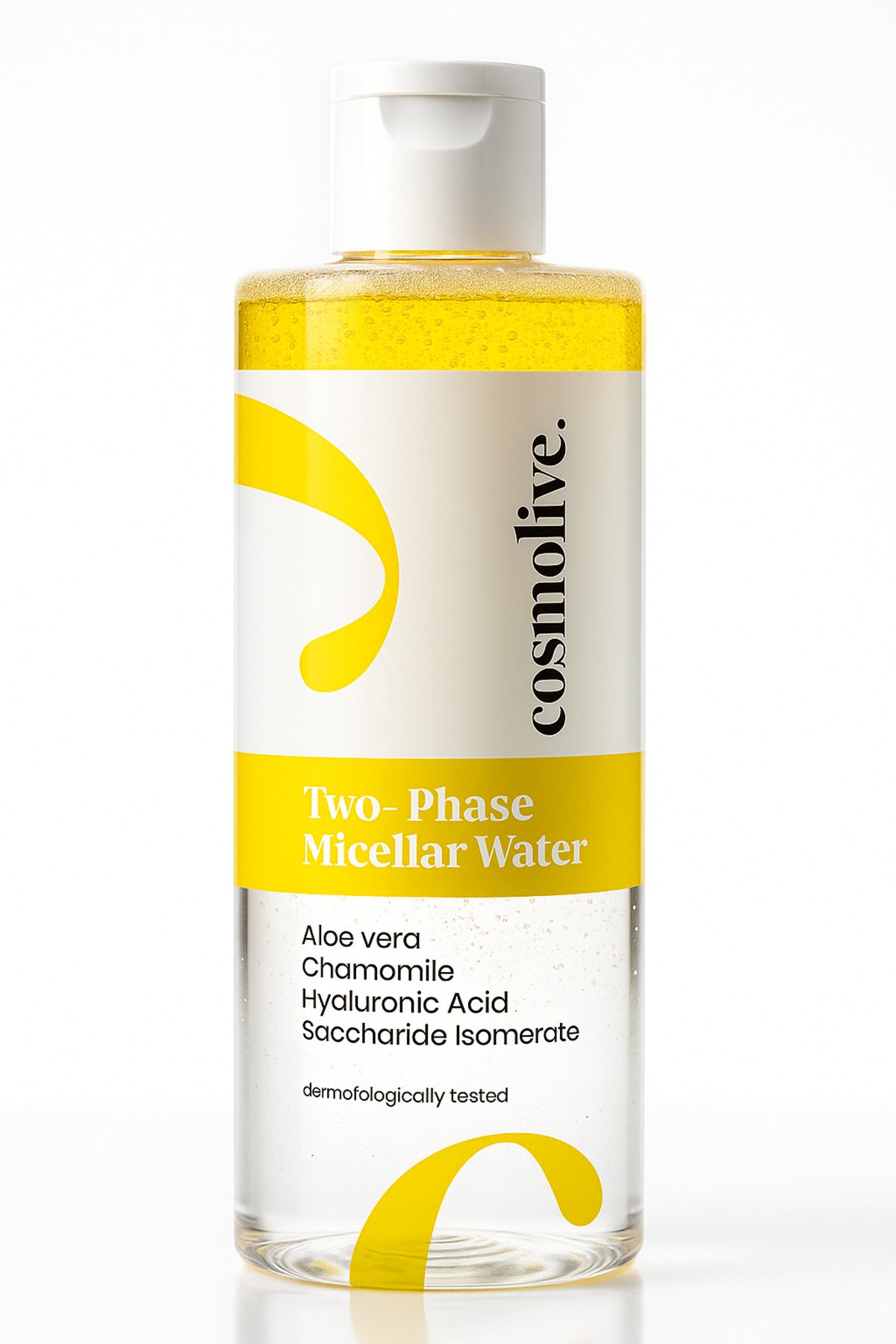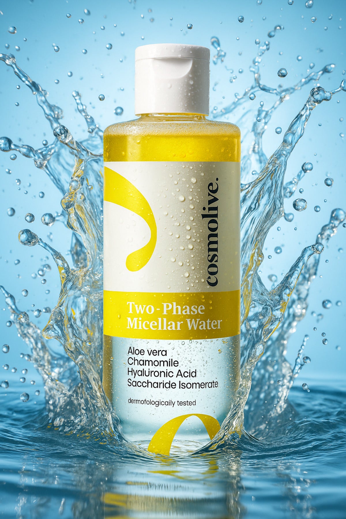 Cosmolive Two-Phase Micellar Water, suya dayanıklı makyajı bile tek adımda nazikçe temizleyen çift fazlı formülüyle göz ve yüz makyaj temizliğinde etkili bir çözümdür.
