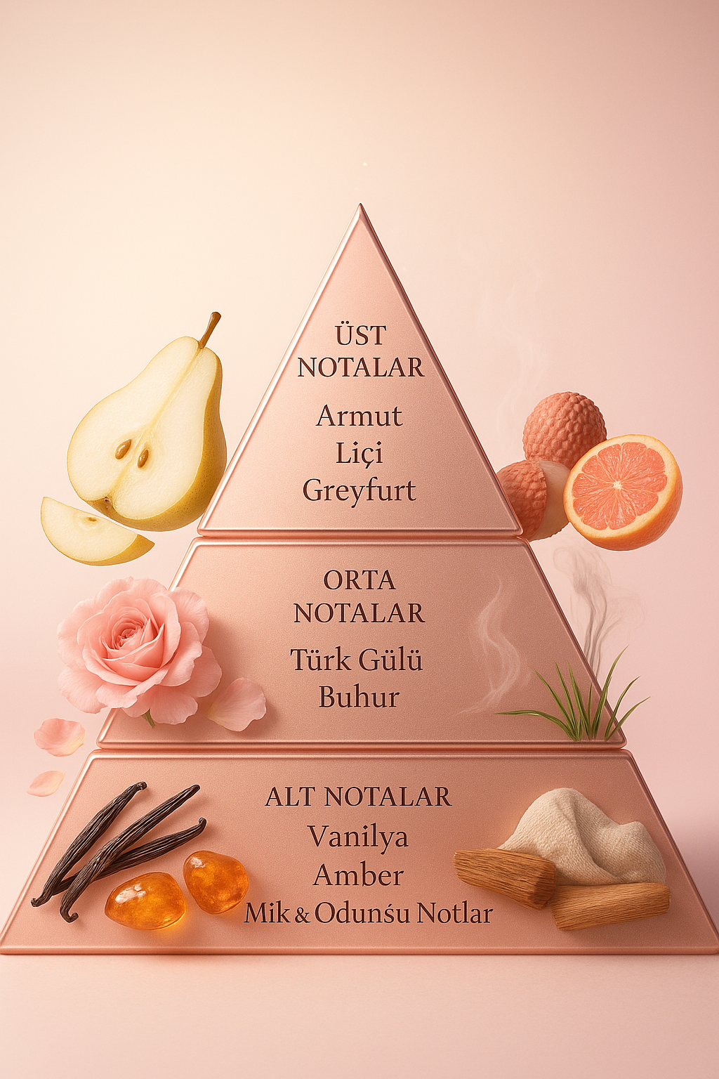 🌸 Kalp Notaları: Gül, Liçi, Şeftali, Yasemin